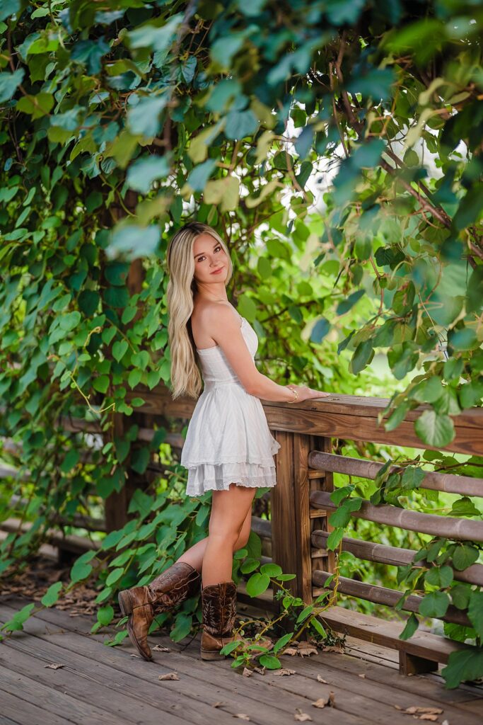 Charley started her shoot in a chic white dress from Quiet Storm, paired with jewelry from enewton and Altar’d State, plus boots from Tracy’s Boots & Buckles. Her look struck the perfect balance of southern charm and effortless style.